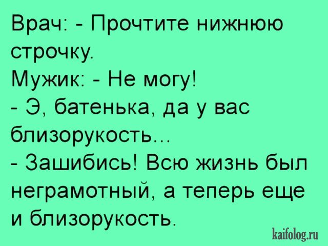А я думала, будет: "Доктор, строчку-то я вижу. Я никак не могу выговорить это слово!"